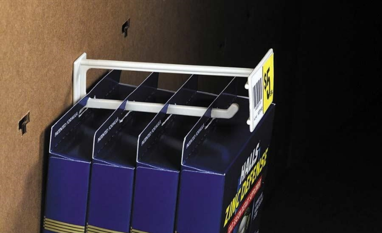 Siffron has a comprehensive selection of hooks for use on corrugated displays. Our hooks work on a variety of thicknesses, including standard B-Flute corrugated walls. We have a variety of options to choose from based on your specific corrugated display needs, like scanning hooks with label holders, stem hooks, hooks that secure into the corrugated material so they stay put during shipping of corrugated displays, and plastic pegboard hooks for light merchandise displays.