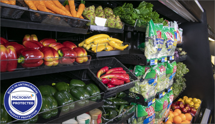 Additional components include an Asparagus Tray with water trays, Variety Bins for each size shelf, and Gravity-Feed Root Bins (intended to sit on racks in the bottom/well of the cases) with removable slanted dummies and dividers.