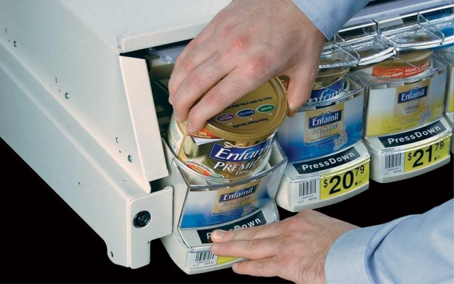 Revolutionize your infant formula display with our cutting-edge Infant Formula Merchandiser! Say goodbye to shelf sweeping and shoplifting woes, as our innovative design not only safeguards your valuable merchandise but also ensures easy access for your customers. With a gravity feed system that effortlessly self-faces the product, restocking becomes a breeze. And for added security, choose our optional P.O.P. Security™ Invisi-Shield™ Panels that guarantee single facing access only.