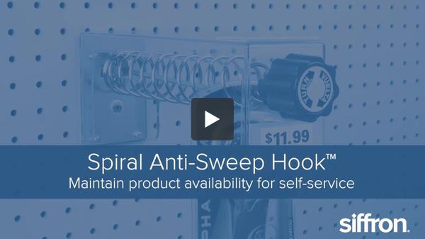 Product Sweep is a big problem for retailers. Instead of just taking one item, product sweep involves quickly grabbing an entire row of merchandise on a display hook, which has a drastic impact on retailer sales. Using a specially designed Spiral Anti-Sweep Hook effectively protects your high risk merchandise and ensures only one item can be shopped at a time.