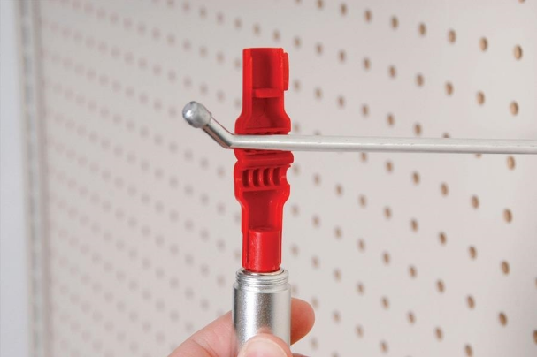 With its affordable price, this effective device ensures that your pegged merchandise stays safe from unauthorized removal. Simply utilize our magnetic key (sold separately) to unlock your products. The bright red color of the lock is highly visible, demonstrating that your display is securely protected. Whether you want to lock all items on the hook or leave the front product open for shoppers while safeguarding additional stock.